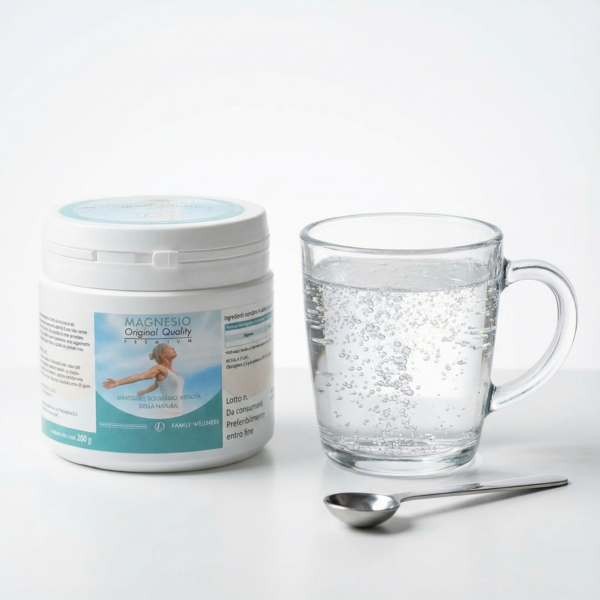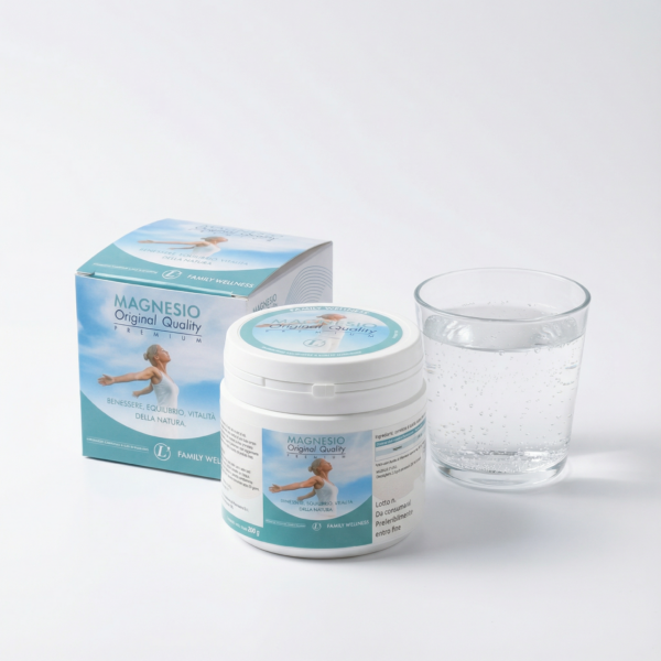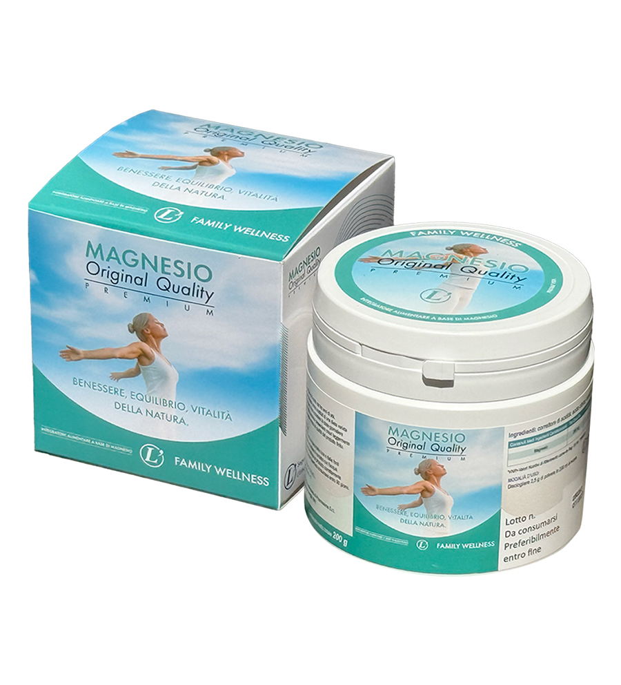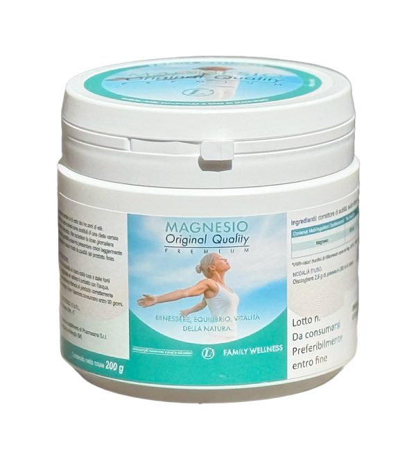 Magnesio Original Quality Premium è una miscela di magnesio carbonato e acido citrico ad alta biodisponibilità (24% magnesio puro). Prodotto da roccia e melassa d’avena non OGM, è facilmente solubile.
